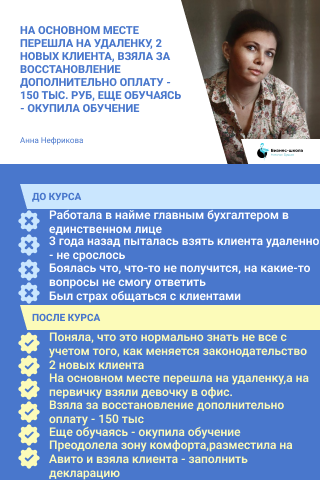 У вас будет понимание и пошаговый план, как получать дополнительный доход от 50.000 руб. в месяц бухгалтеру на удаленном ведении клиентов